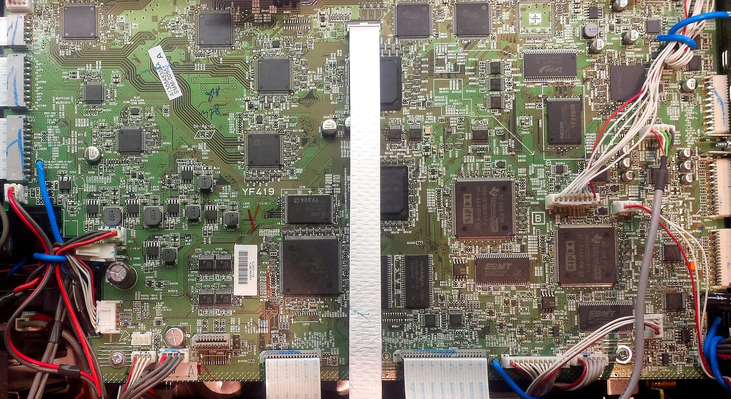 None whatsoever. Before you start throwing tomatoes at the screen, have a look at this simplified schematic which shows half of one of the simplest audio chips in the Yamaha, the ubiquitous NE5532 operational amplifier: