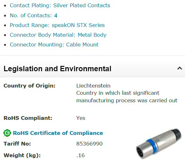 Not only is the country of origin clearly stated but full documentation verifying its mechanical and electrical specifications, the materials from which it is made and recommended applications is available at a mouse click.